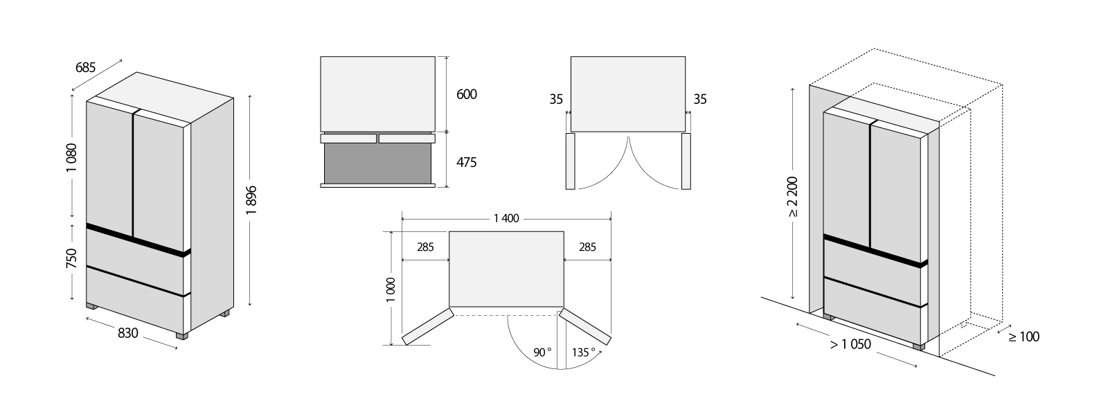 Lednice LA6983ss disponuje praktickým otevíráním dveří. Pro plnohodnotné vysunutí zásuvky variabilní a fresh zóny stačí dveře lednice otevřít pouze do pravého úhlu. Lednici tedy můžete umístit i blízko zdi, ale vždy je nutné počítat s lehkým náběhem dveří min. 35 mm.