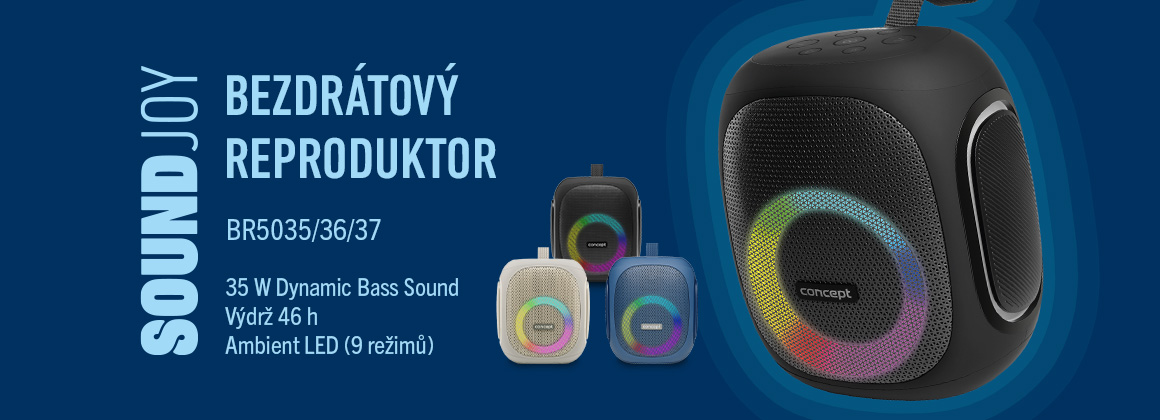 Reproduktor SoundJoy Concept BR5036 s výkonem 35 W a technologií Dynamic Bass Sound dodává hudbě hluboké, výrazné basy a zároveň zachovává čisté středy a jasné výšky. Hudba tak zní plně a živě, ať už posloucháte doma, nebo pořádáte párty s přáteli. Reproduktor snadno naplní každý prostor skvělou atmosférou a okamžitě vás vtáhne do děje. Díky ochraně IPX5 se nemusíte obávat stříkající vody ani prachu, takže se perfektně hodí i na venkovní použití – třeba na piknik, grilovačku nebo párty u bazénu.