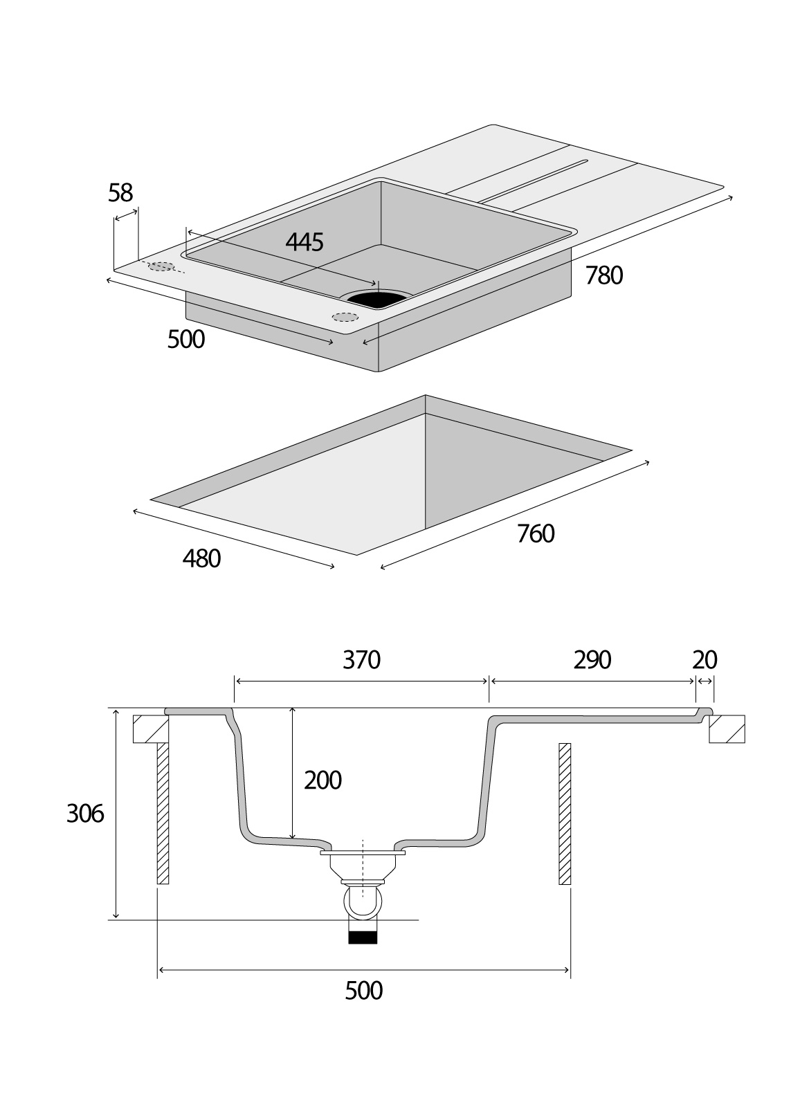 Model DG10N50wh je hranatý kuchyňský dřez s odkapem. Je vhodný pro montáž na desku s minimální šířkou skříňky 45 cm. Je opatřen sítkovým ventilem 3 1/2" s přepadem a sifonem s odbočkou na myčku nádobí. Benefitem jsou dva předvrtané otvory, takže vám odpadá nepříjemná práce s jejich vyvrtáváním. Součástí balení jsou i kovové součástky na uchycení dřezu k pracovní desce.