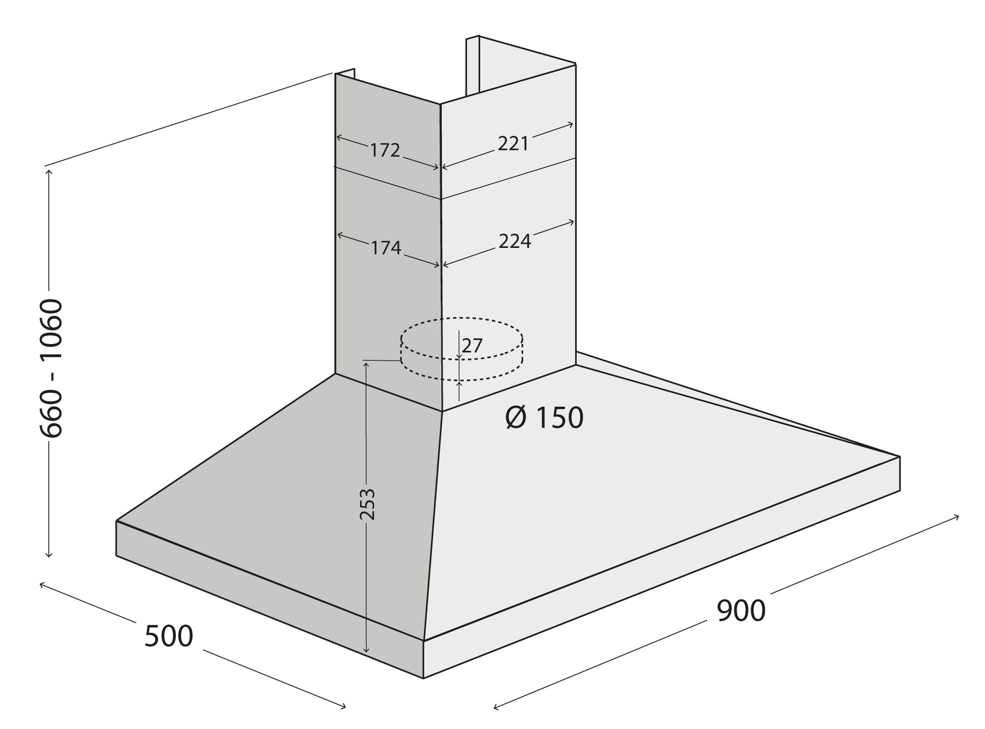Výška odsavače je zpravidla udávaná v minimálních a maximálních hodnotách. Dle libosti si můžete uzpůsobit výšku odsavače. V balení jsou k dispozici dvě části komínu, které do sebe zapadají. Vy si můžete tuto výšku nastavit přesně podle svých představ.