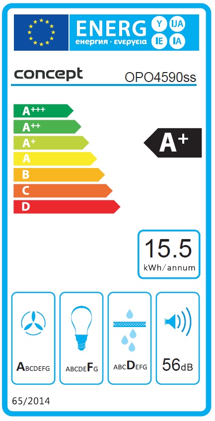 Digestoř OPO4590ss vyniká nízkou roční spotřebou energie, která činí pouhých 15,5 kWh. Díky tomu patří mezi úsporné spotřebiče se zařazením do energetické třídy A+. Ve srovnání s obdobnými modely spadajícími do energetické třídy B dokáže model OPO4590ss ušetřit za rok 75 % energie, ve srovnání s energetickou třídou C přesahuje hranici 80% úspory.