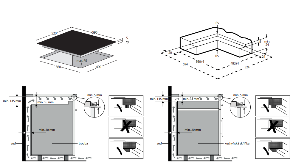 Zabudování do roviny s pracovní deskou